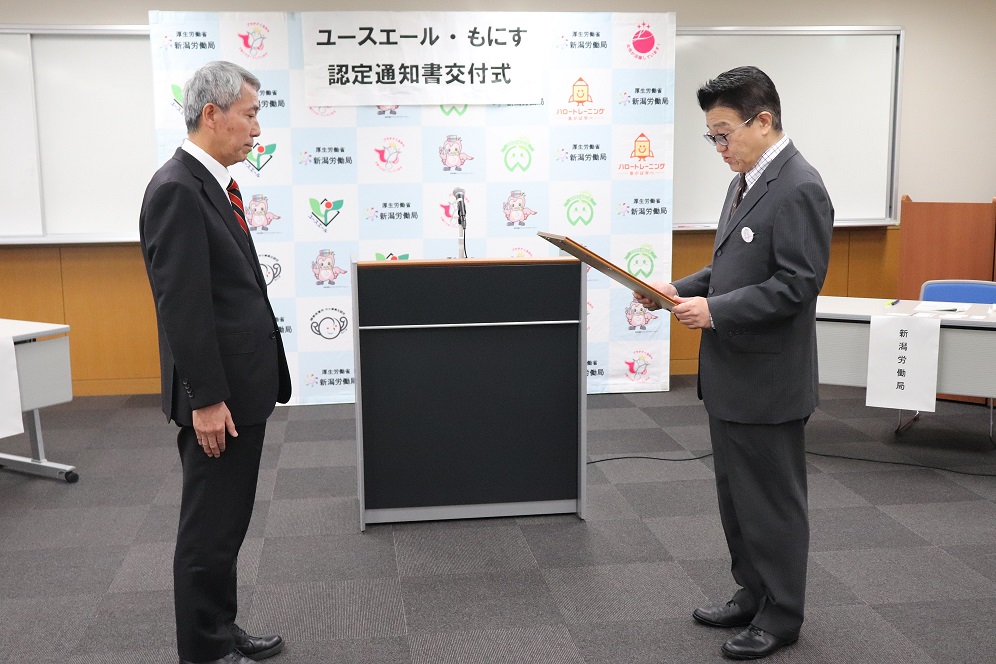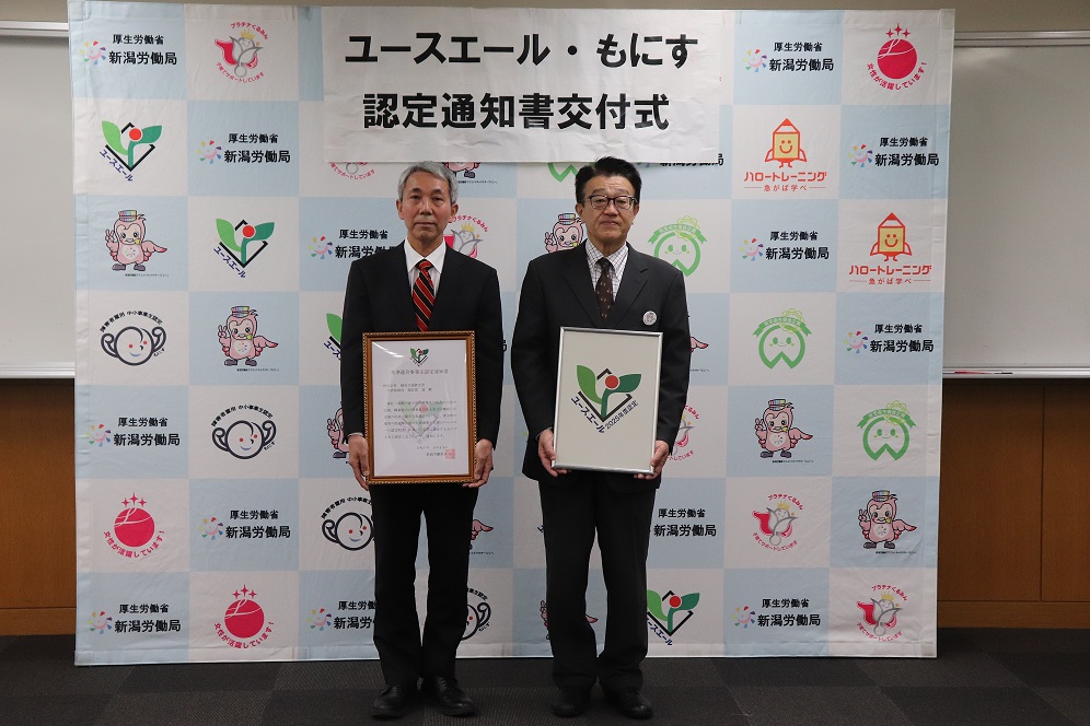 2025年度 ユースエール認定通知書交付式に出席いたしました この度、新潟労働局主催の「ユースエール認定通知書交付式」に出席し、2025年度ユースエール認定企業として認定通知書の交付を受けました。 長岡地域(長岡市/小千谷市/見附市)では今年度10社が認定されており、当社はそのうちの1社として選ばれました。 今後も、若者が安心して働ける環境づくりに全力で取り組み、地域社会に貢献できる企業を目指してまいります。